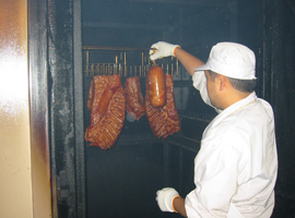 古代豚工房は、埼玉県美里町の自家農場(古代豚白石農場)で飼育した、古代豚のみを原料とし、ハムやソーセージを手作りで製造しています。自家農場の新鮮な古代豚を原料にすることで、着色料や防腐剤などを使用せず、その他の添加物も極力少なくしています。スモークは、桜の薪による昔ながらの「直火製法」にこだわり、遠赤外線の熱で素材の美味しさを十分に引き出したハム・ソーセージを創っています。