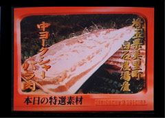 豚キムチVSレバニラの料理対決! 平成12年6月に日本テレビ系の番組「どっちの料理ショー」で放映されました。 幻の肉 古代豚は豚キムチの特選素材として取り 上げられ、古代豚の食感はまるで「オードリ−・ へップバーンのような女性的な味」と高い評価を頂きました。